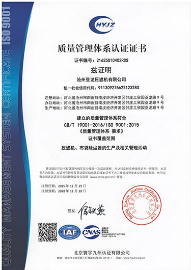 公司名稱:滄州亞龍壓濾機有限公司 公司地址:河北省南皮縣付莊工業(yè)開發(fā)區(qū) 電話:0317-8189922 傳真:0317-8189923 手機:13831723798 網(wǎng)址: