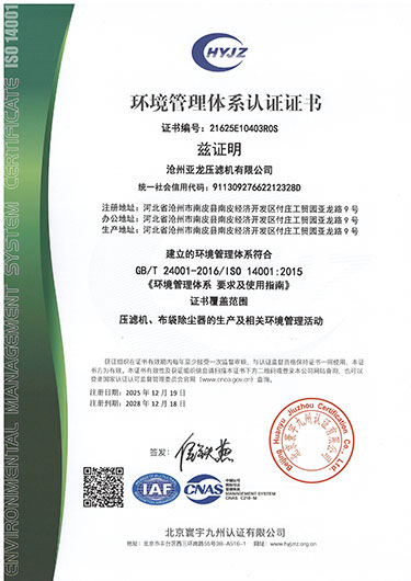 環(huán)境管理體系認(rèn)證證書